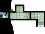Throg and Kelgar can see that the unopened door to the south is different from all of the other doors encountered so far. It is probably older and is rotting badly. There are even some large holes that the light of the lantern is going through.